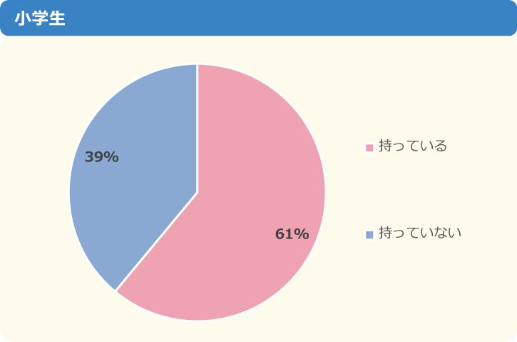 約7割が「持っている」と回答しました。小学生では約6割の人が所持していますが、中学生になるとPC、スマホ、タブレットなどを持ち始める人がさらに増えるようです。