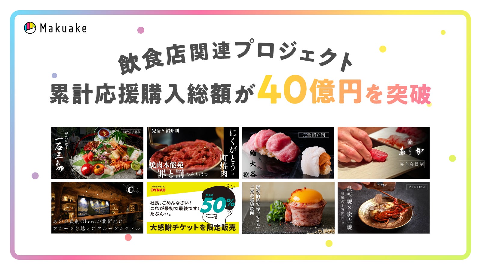 アタラシイものや体験の応援購入サービス「Makuake」にて飲食店のプロジェクトの累計応援購入総額が40億円を突破!