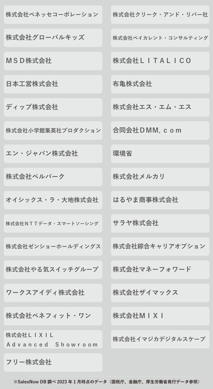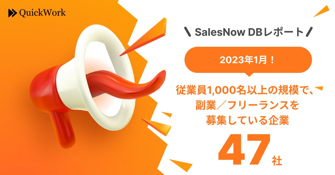 2023年1月!従業員1,000名以上の規模で、副業/フリーランスを募集している企業47社/SalesNow DBレポート
