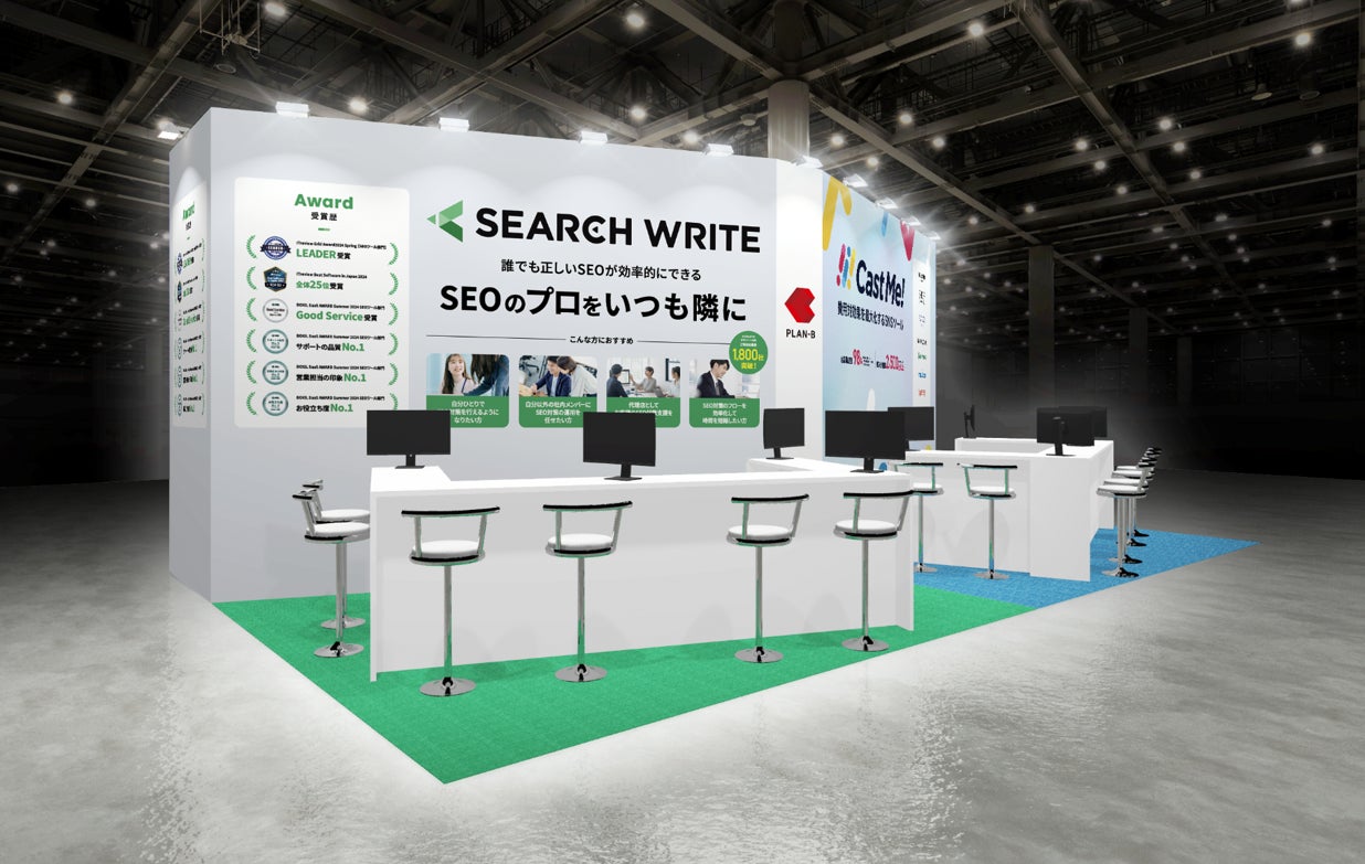それぞれのブースでは、SEOツール「SEARCH WRITE」・インフルエンサーマーケティングプラットフォーム「Cast Me!」のツール実演のほか、成功事例のご紹介やSEOサイト診断など、マーケティングのお悩み解決に役立つアイデアをご紹介します。