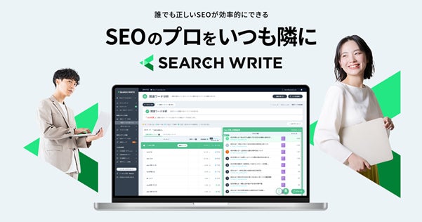 「SEARCH WRITE」は、 "知識がなくてもすぐに使えるSEOツール" をコンセプトに、累計5,200社以上の取引実績を誇る国内最大規模のSEOコンサルティングサービスを通して培った成功ノウハウをもとに開発したSEOツールです。