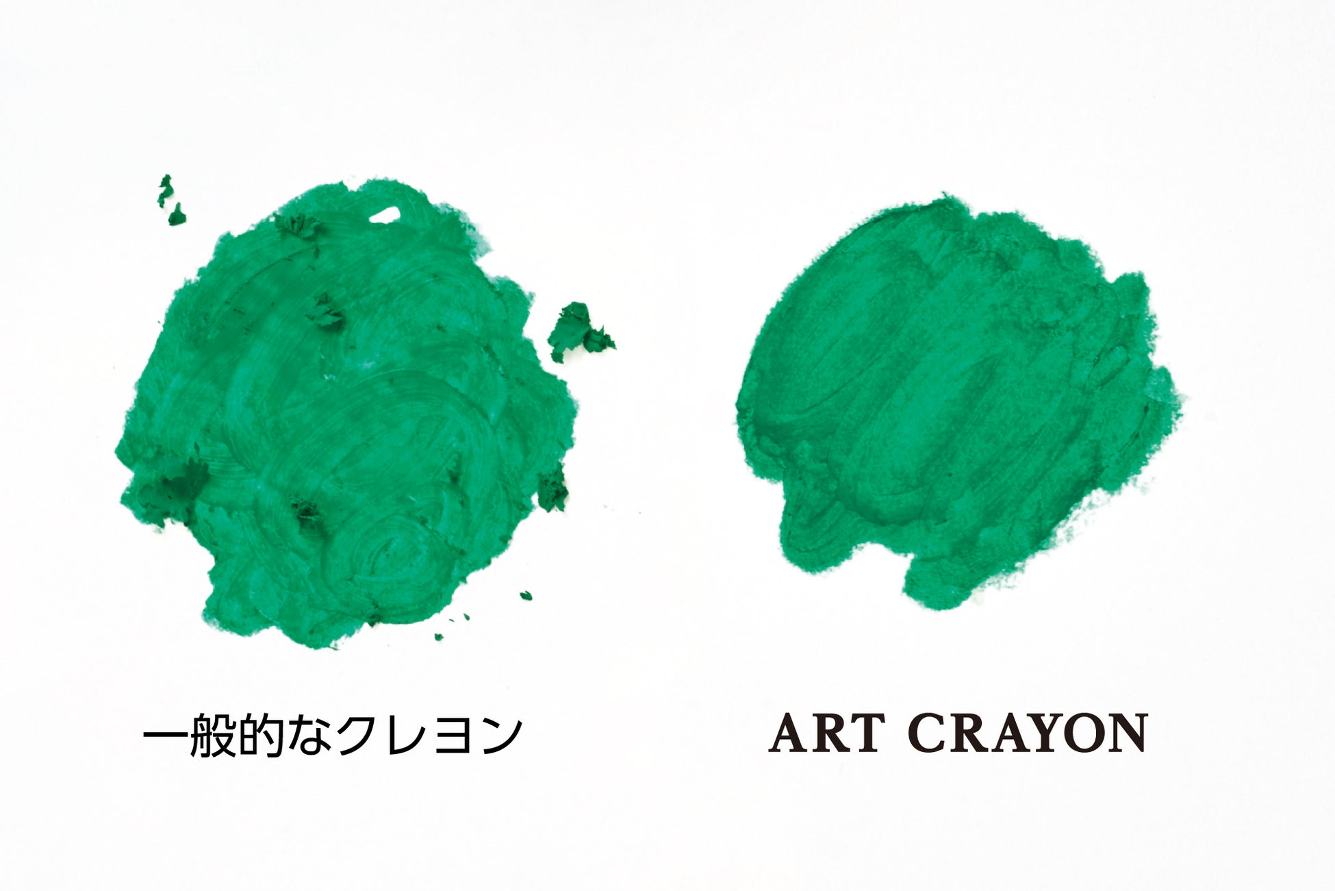学童用のクレヨンが硬めのタッチ感なのに対して、アートクレヨンは柔らかめのタッチ感で、筆圧の加減によって細い線も太い線も思いのままに描くことができます。線を描くのも面を塗るのも心地良く、これまでにない、なめらかでしっとりとした描き心地を追求しました。