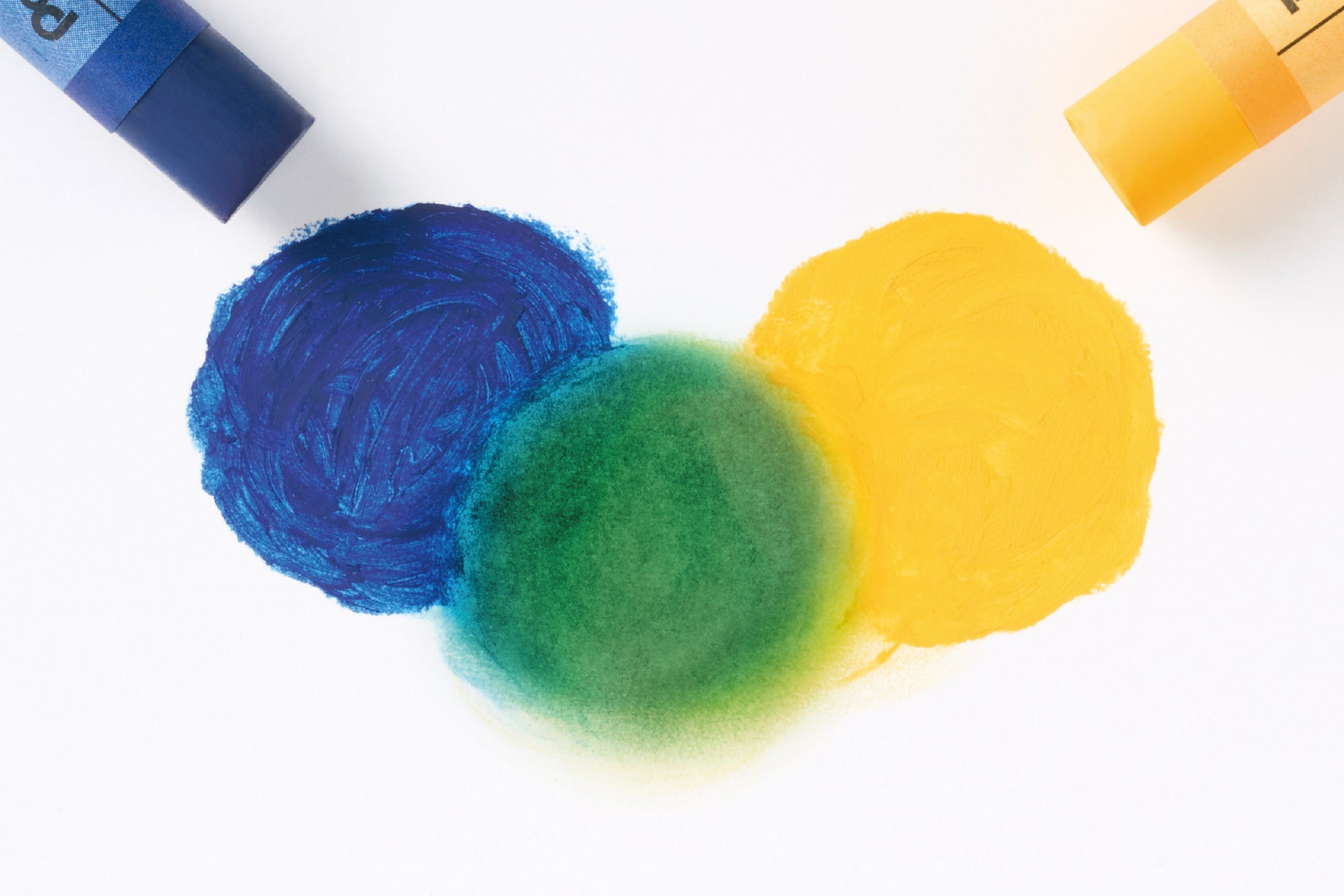 調整を重ね、色ごとに異なる最適なテクスチャへと仕上げました。伸びが良く、広い面もスムーズに塗ることができ、混色やぼかしを美しく表現できます。通常、色同士を混ぜ合わせる「混色」と、下地の色を塗った上にさらに色を重ねる「重色」とでは、相反する配合が要求されますが、アートクレヨンは、混色のしやすさを追求し、かつ重色をコントロールできる性能を実現することで、油絵のような重厚な表現を可能にしました。