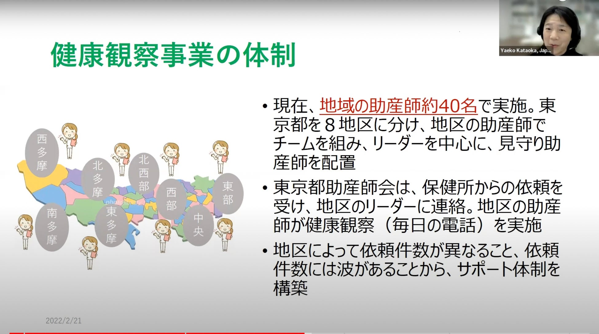 セミナーでは、妊婦さん自身がコロナ陽性者や濃厚接触者になったらどうすればいいか?といったことや、自宅療養妊婦への健康観察について(東京都の例)や、自宅療養妊婦の健康観察の実際などについて専門家の方々から解説しています。また、参加された方々からの質問に対しても、講師の方々から丁寧に回答いただいていますので、不安な妊婦さんやそのご家族の方などに、ぜひ知っていただきたい内容となっています。