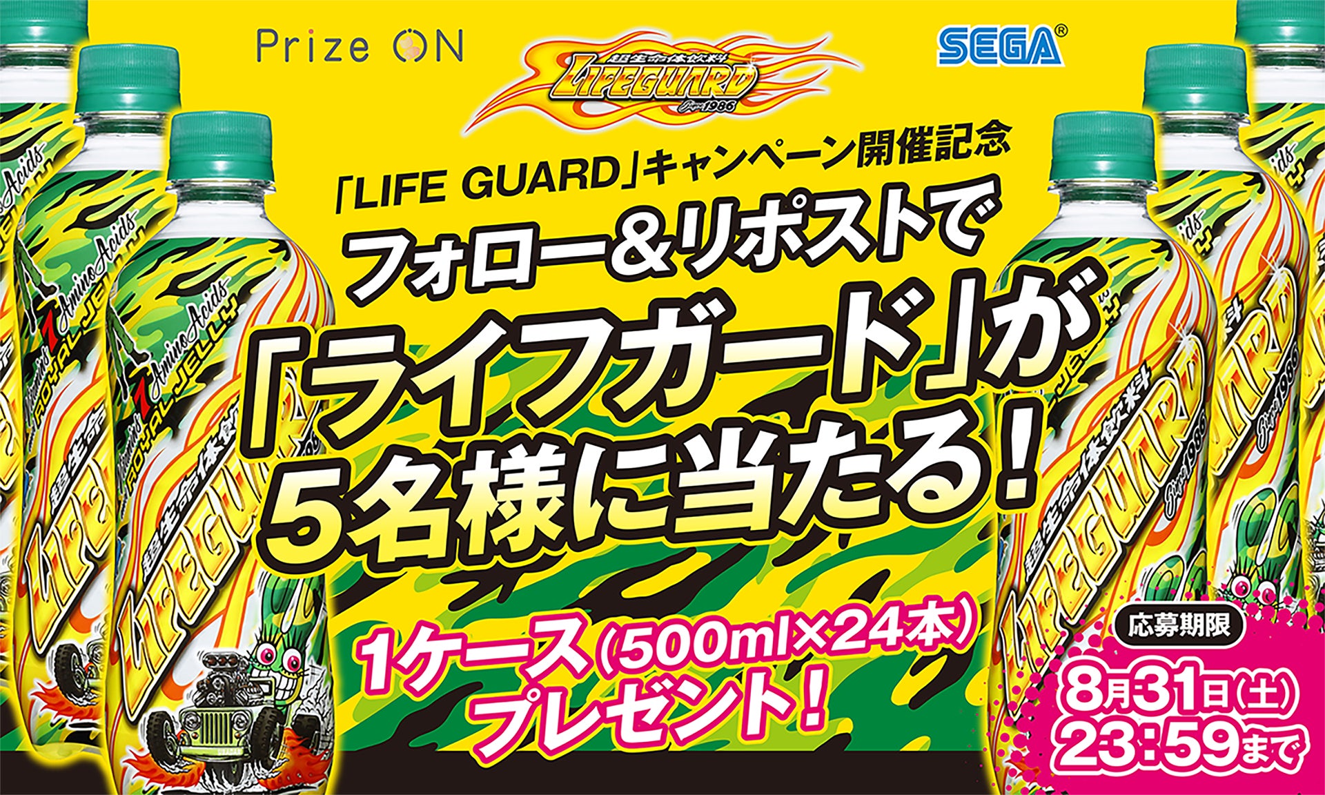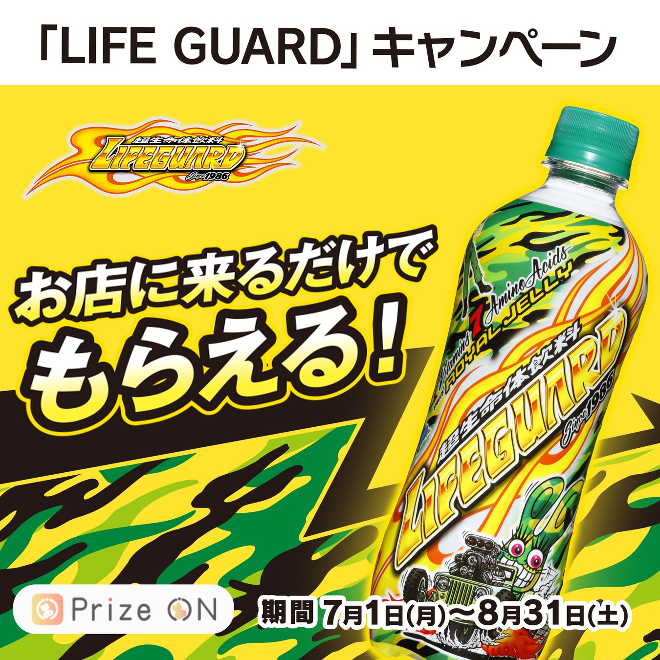 本キャンペーンでは、エナジー系炭酸飲料のロングセラー商品である『超生命体飲料ライフガード』を、対象店舗にて『Prize ON』アプリの交換画面を提示された方へ配布いたします。