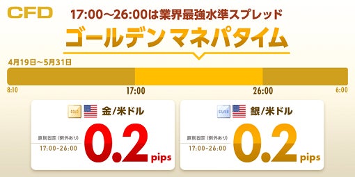 5月も継続決定!CFD-Metalsも業界最狭水準スプレッドのゴールデンマネパタイム(17時~26時)がお取引のチャンス!