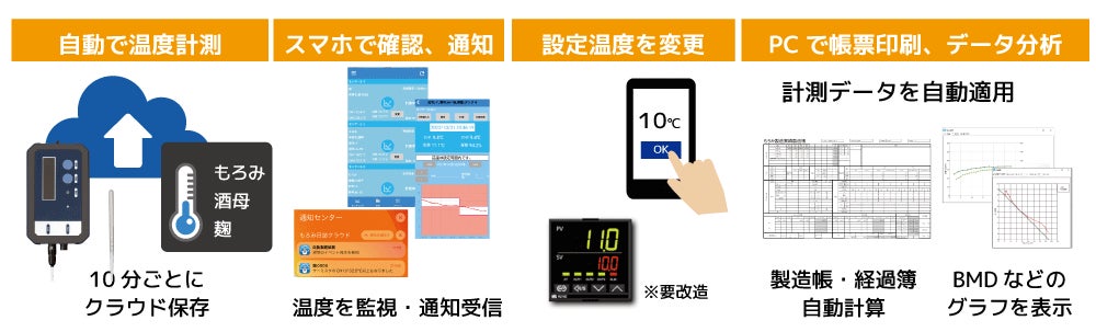 スマホで24h温度を可視化、遠隔モニタリングとプッシュ通知で品質維持、若手の育成に活用