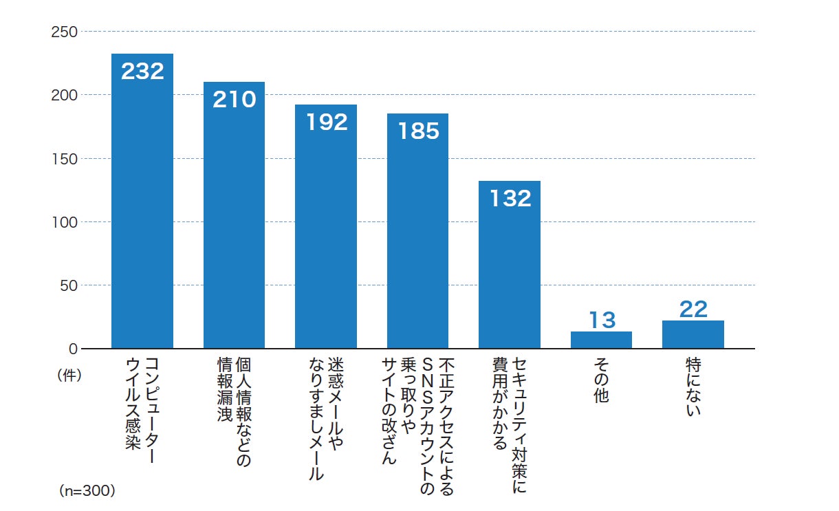IT利用にあたり「コンピューターウイルス感染」にもっともリスクを感じている