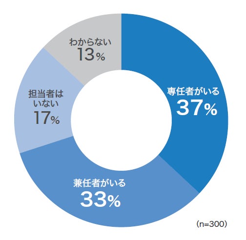 企業におけるセキュリティ担当については、「専任者がいる」が「兼任者がいる」よりも若干多く、最多票を集めた結果となりました。中小企業の人員規模では専任担当者を配置する余裕がないところも多い中で、この調査では人材不足が特に顕著という結果ではありませんでした。一方で17%は「担当者がいない」と回答していますが、その半分は「従業員20人未満」の企業であり、従業員数が少ない場合には、こうした職務の担当者を配置しづらい点が示されます。