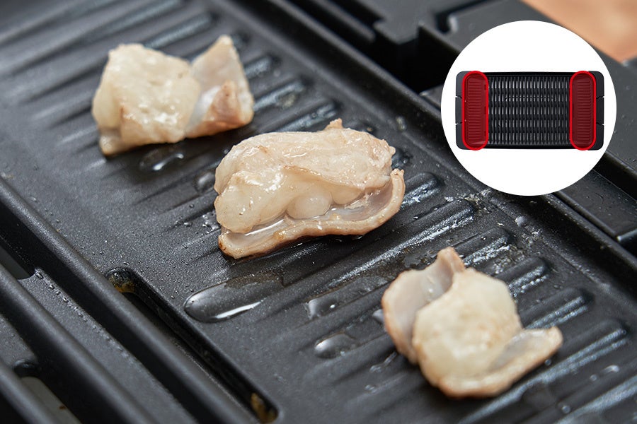 mottoleの減煙ホットプレートは油をすぐに落とすため、煙の発生を抑えます。