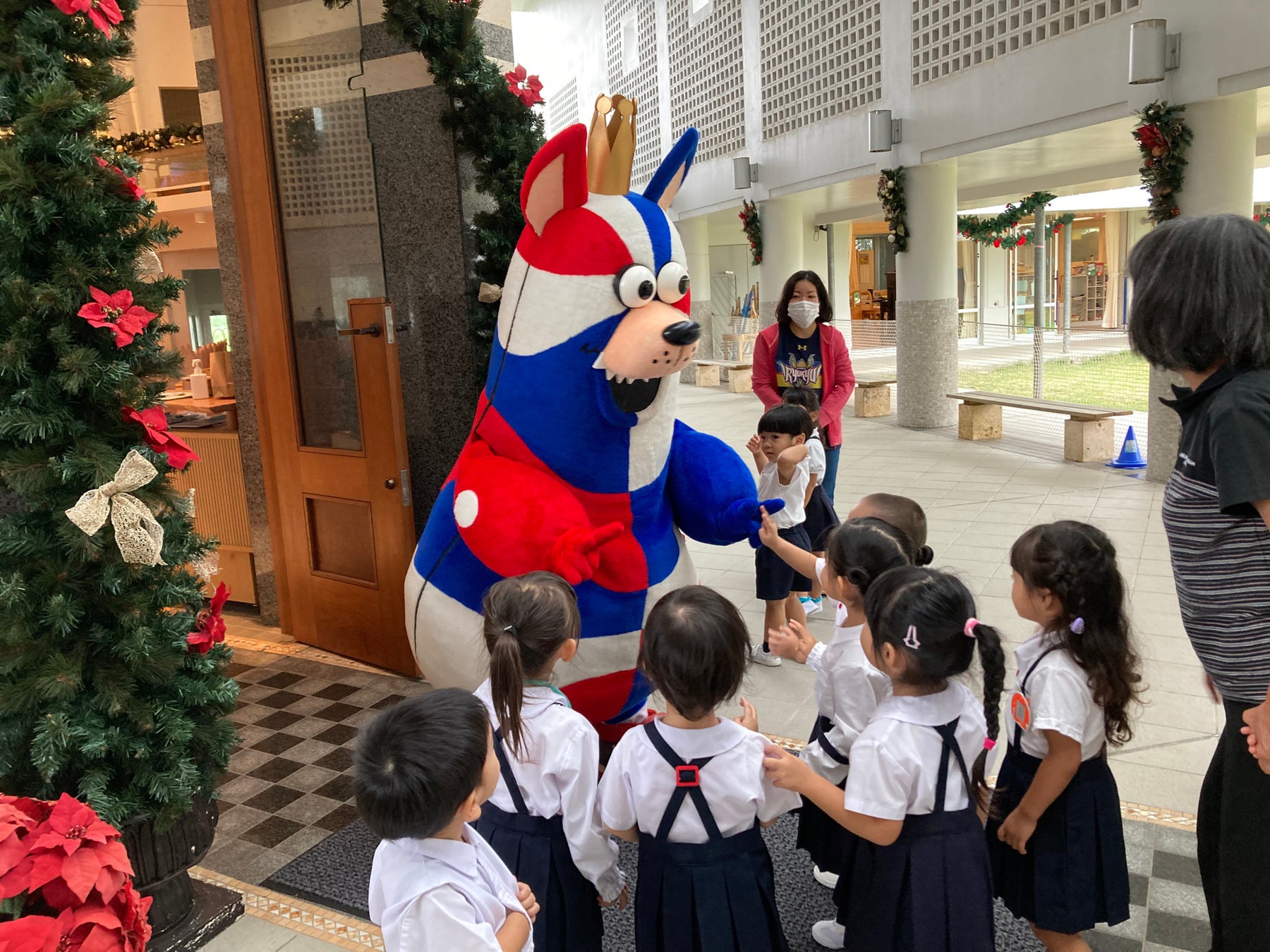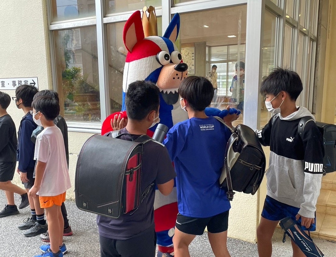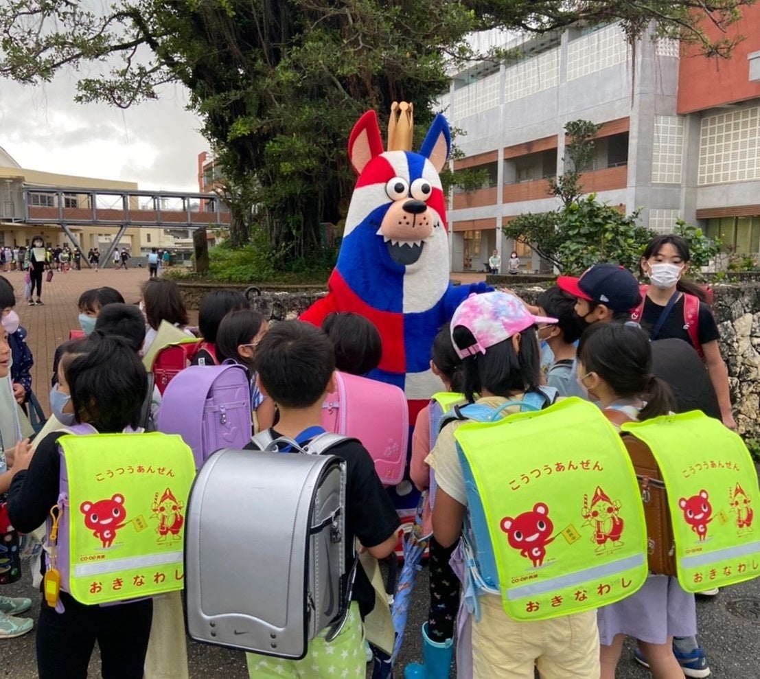11月7日(月)から11月30日(水)の期間で、「おおきなわ」の活動の一環として、キングスマスコットのゴーディーが沖縄市内の小学校(7校)にて朝のあいさつ運動に参加いたしました。ご協力いただいた各小学校の皆さま、ありがとうございました。