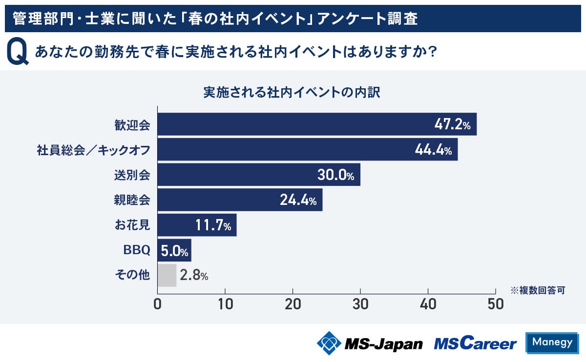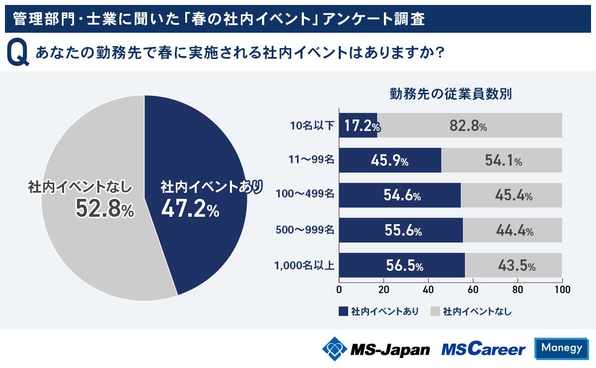 MS-Japanが管理部門・士業に『春の社内イベントの実態』を調査!約半数が「春に社内イベントがある」と回答/従業員数と比例して実施率は上昇傾向