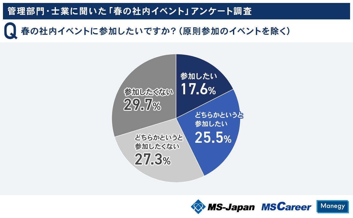 春の社内イベントに「参加したい」「どちらかというと参加したい」割合は約4割