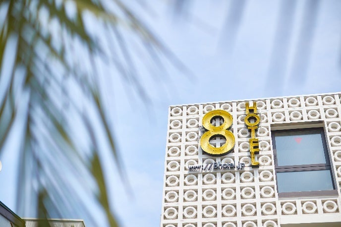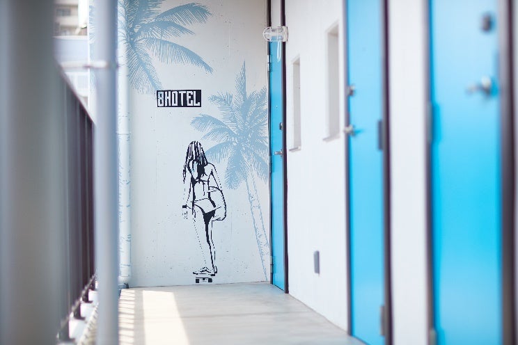 8HOTELS CHIGASAKIはJR茅ヶ崎駅徒歩4分にある海外のモーテルを彷彿させる空間で、ホテル内には本格フィンランド式サウナやビーチリゾート風プールといった非日常の空間が広がり、また、ホテル内に留まらず茅ヶ崎のまちを回遊し、地域を満喫できるホテルです。