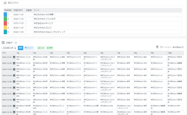 収集したデータは管理画面で一覧で確認できるほか、日ごとにキャプチャした画像データやExcelでの表にてダウンロードすることができます。