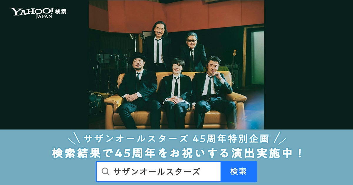 ヤフー株式会社(以下、Yahoo! JAPAN)が提供する「Yahoo!検索」は、アーティストや声優、俳優、お笑い芸人などの記念日に名前やグループ名で検索すると、ハートが完成していく特別なお祝い演出が表示され、記念日をお祝いできる機能(以下、本機能)の提供を開始しました(※)。第1弾として、2023年6月25日にデビュー45周年を迎えるサザンオールスターズをお祝いする施策を実施しました。