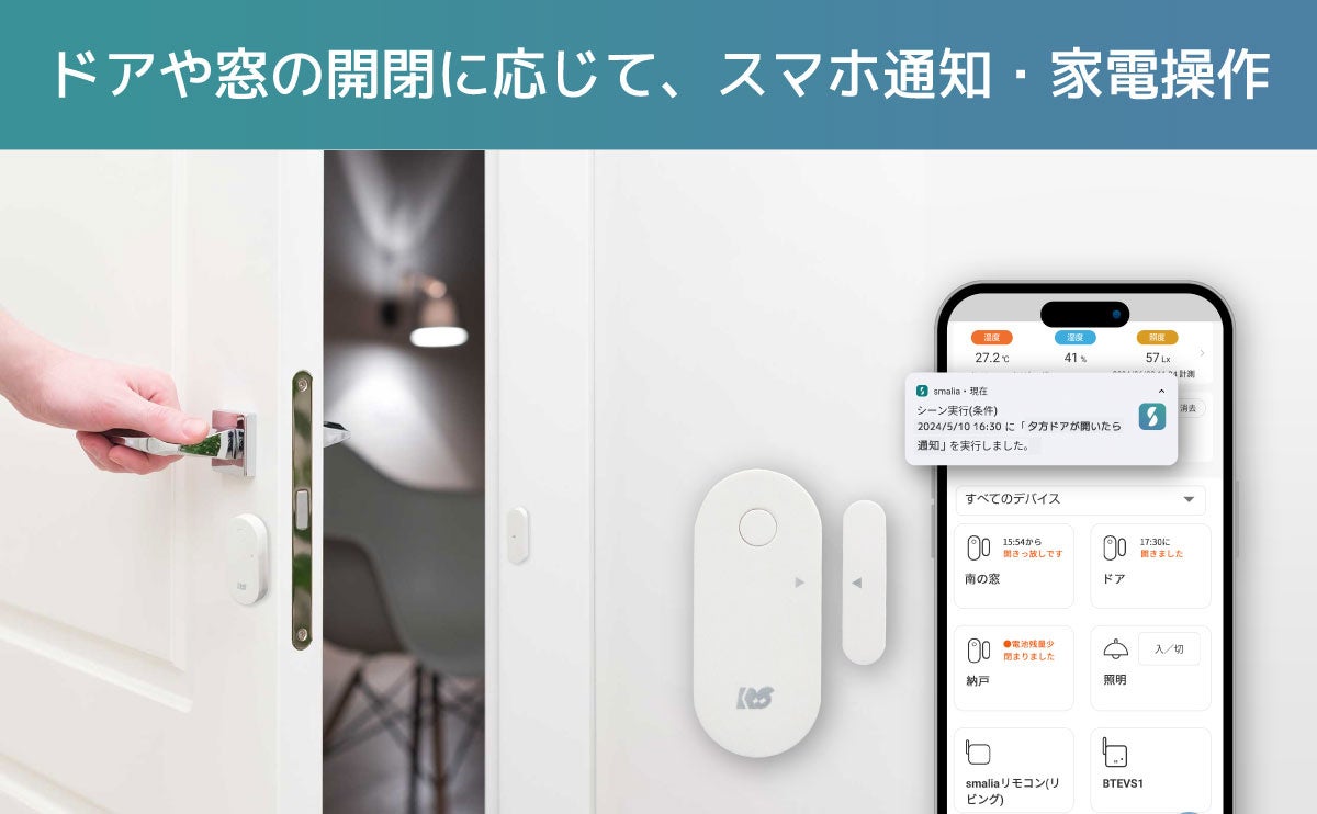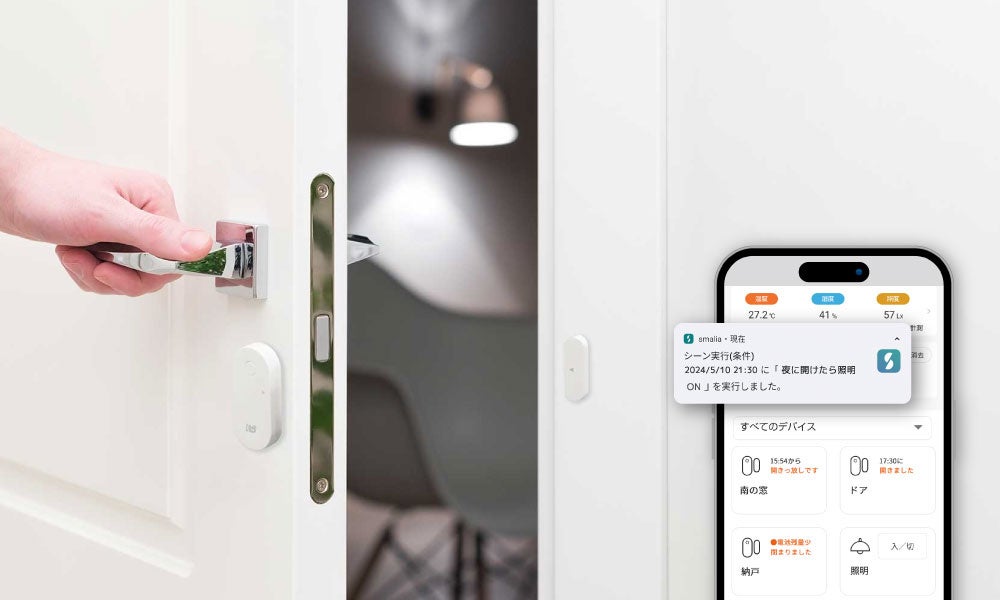 ドアの開閉でスマホ通知・照明ON!見守りや防犯に便利な開閉センサー、6月下旬発売