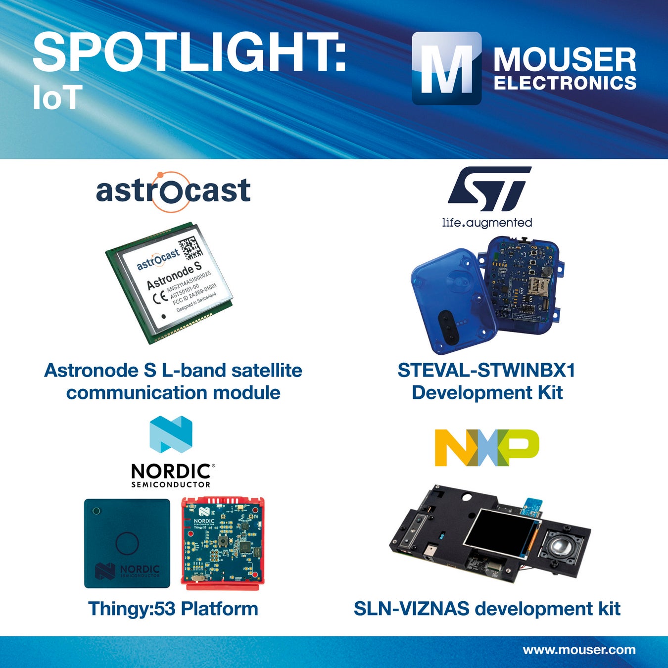 マウザーが取り扱うIoT開発キットと接続モジュール(一部)