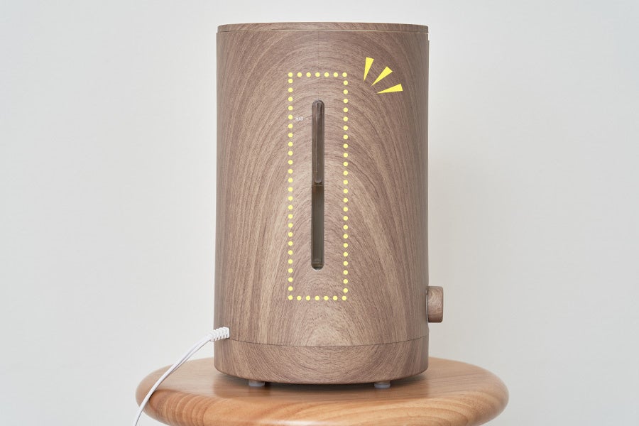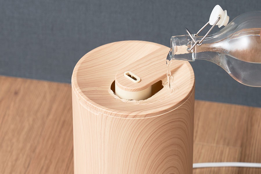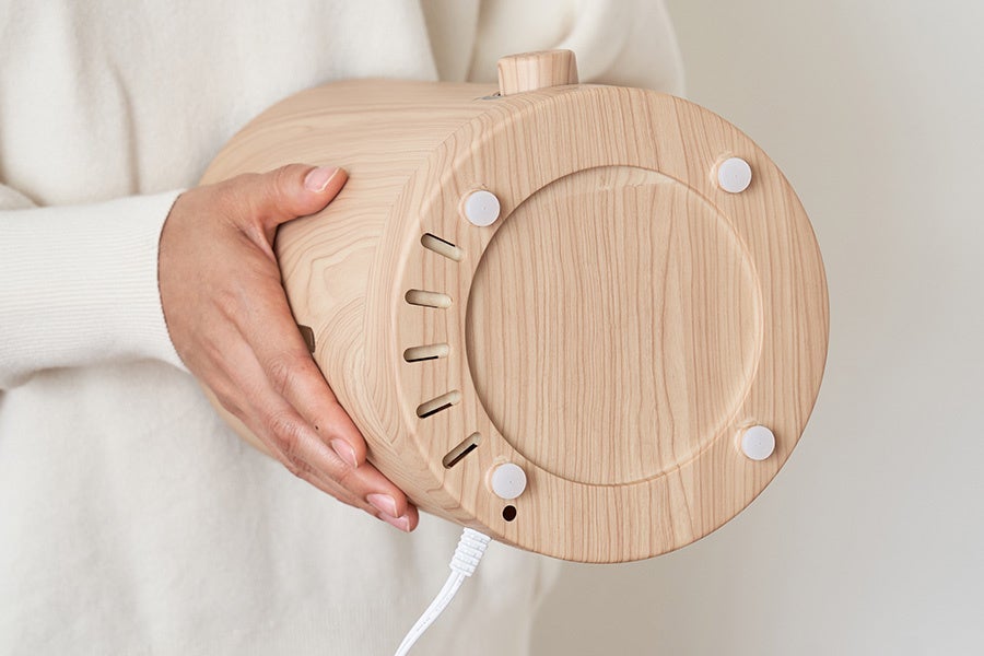 タンクの持ち運び不要で、上から楽々給水できる便利な加湿器に、インテリアに調和するウッド柄が登場。家具との馴染みが良いナチュラルと、お部屋のアクセントになるオークの2色展開。