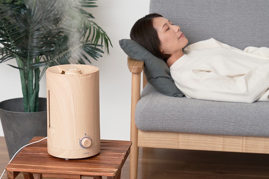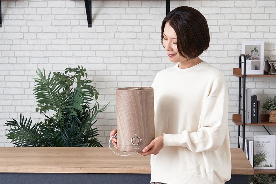 加湿器の給水ストレスを解消!上から注げる「上部給水式超音波アロマ加湿器」に新バリエーションのウッド柄2色がmottoleより発売。