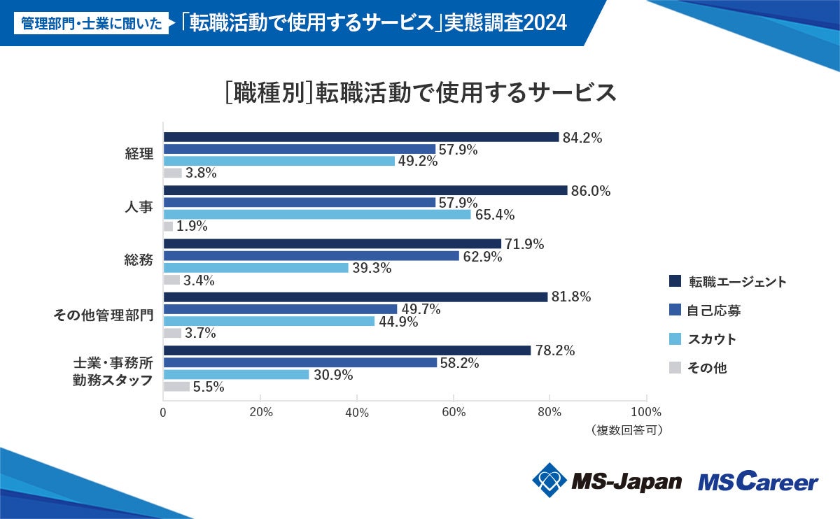 MS-Japanが管理部門・士業に『転職活動で使用するサービス』を調査!約8割が転職活動で「転職エージェント」を使用