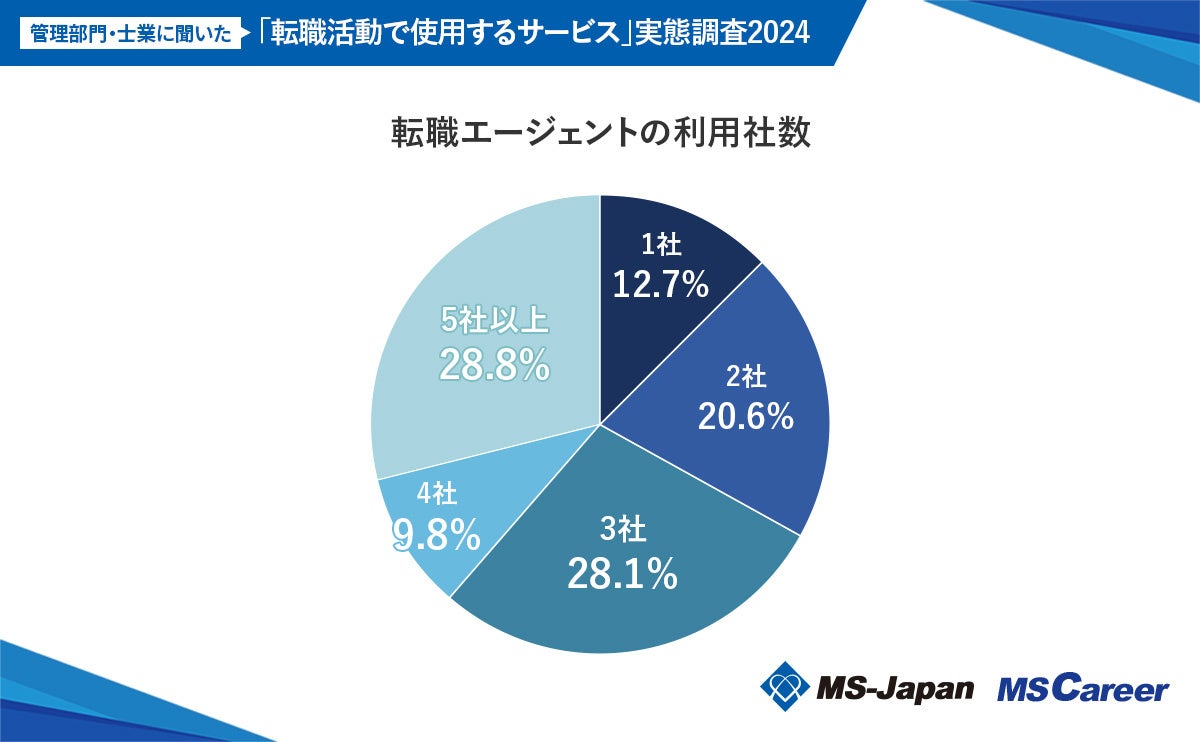 87.3%が複数社利用しており、その中でも「5社以上」が28.8%、「3社」が28.0%を占めていました。