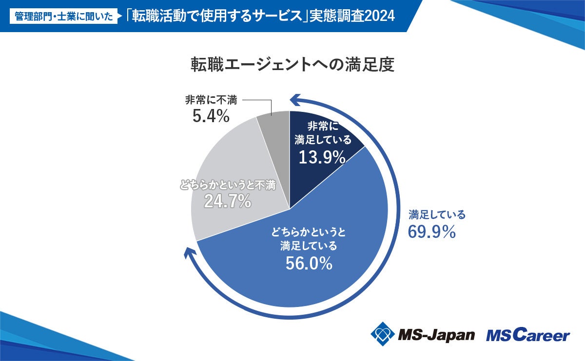 「非常に満足している」が13.9%、「どちらかというと満足している」が56.0%と、69.9%が「満足している」と回答していました。
