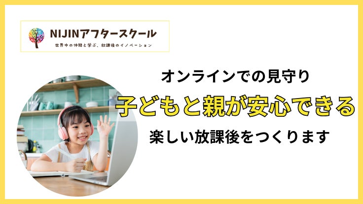 株式会社NIJIN(本社:東京都江東区、代表取締役:星野達郎)が運営する小中学生を対象としたメタバース学童『NIJINアフタースクール』(2024年9/2(月)開校予定)は、オンラインでの見守りを活用し、子どもたちや保護者が安心して楽しめる放課後創りに取り組んでいきます。