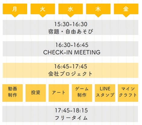 動画クリエイター会社、ゲーム制作会社、LINEスタンプ会社、投資会社、アート会社、マインクラフト会社がそれぞれ活動する時間です。