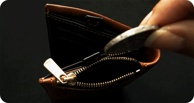 小銭入れのジッパー: YKK株式会社製 金色