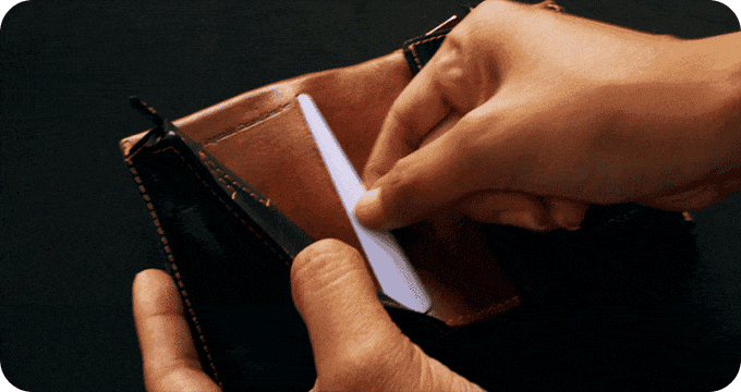 内側の裏地は、非接触端子からカードに届く信号を防ぎます。信号は前面の非接触スロットにしか届かない場合があります。残りはRFIDで保護されています。
