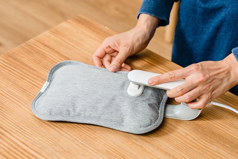 繰り返し使えて熱くなり過ぎず冷めにくい、エコで省エネな蓄熱式湯たんぽです。