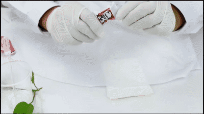 使い方も簡単。汚れの裏側に布をてて、汚れた部分に水を含ませます。あとはViTUNを当てるだけ。みるみるうちに汚れが落ちます。