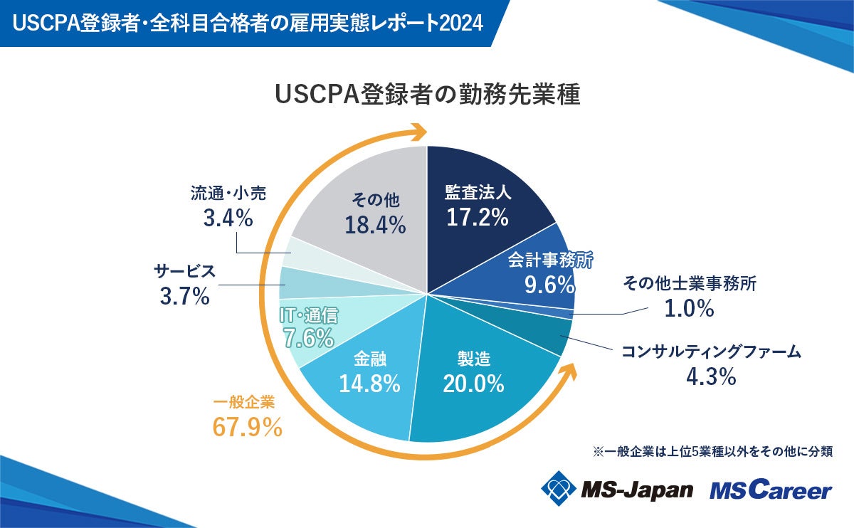また、一般企業に勤めているUSCPA登録者は全体の67.9%を占める結果となりました。