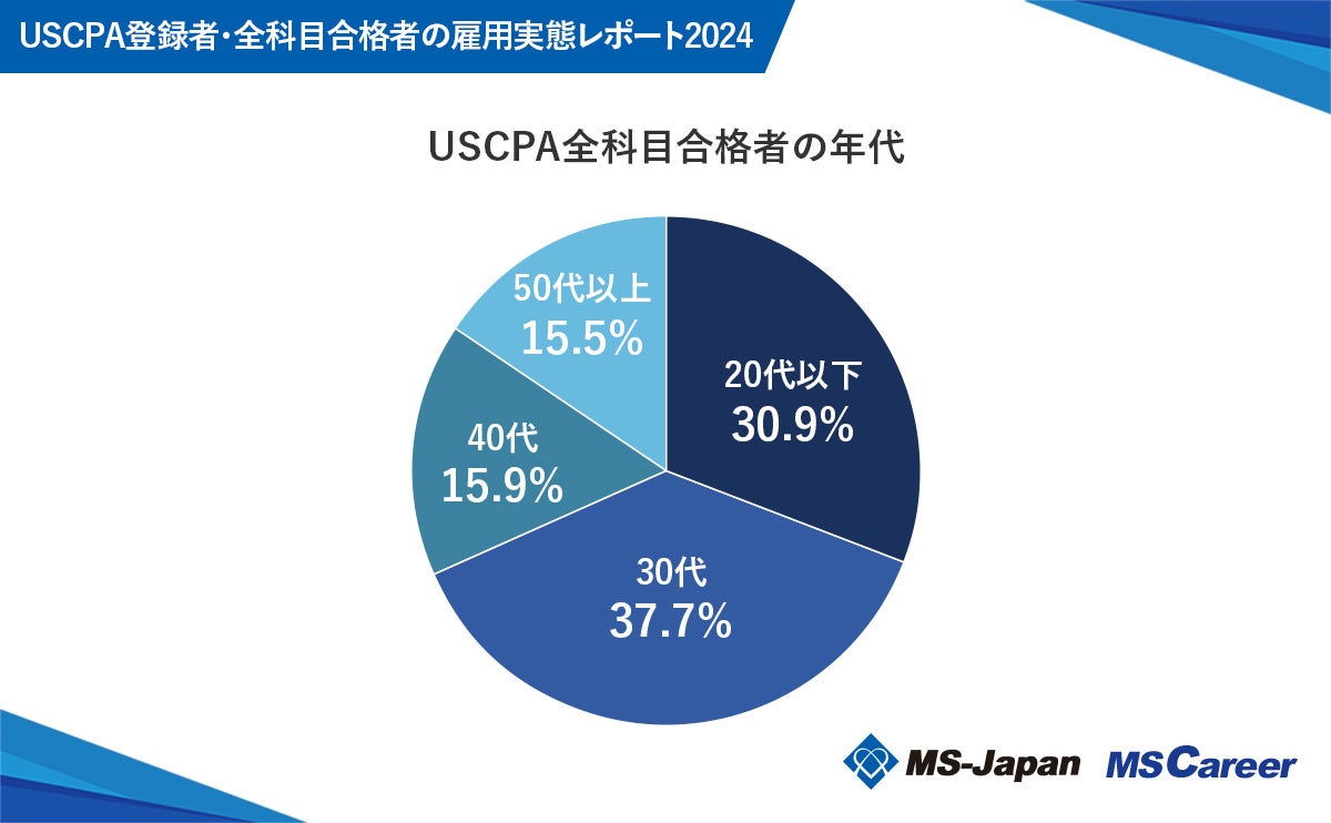 USCPA全科目合格者においても、最多は「30代」で37.7%でした。