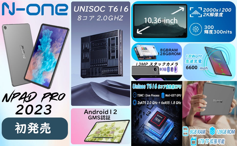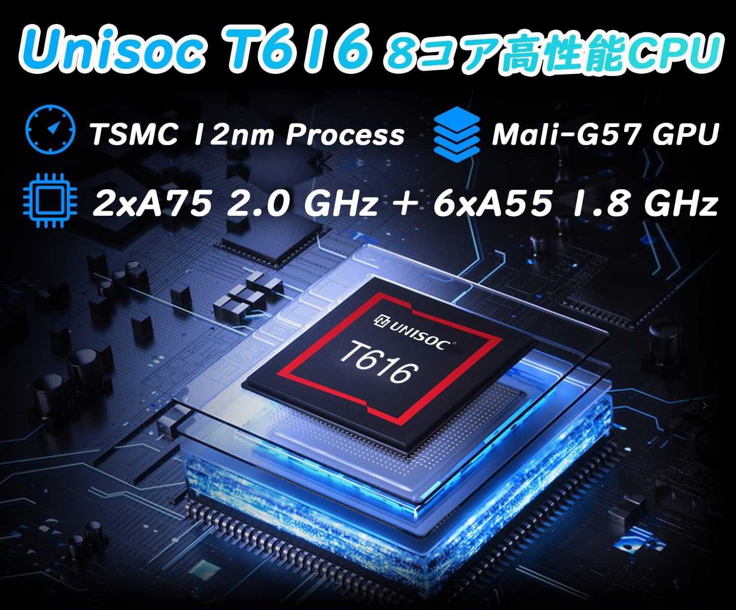 10.4インチ / Android 12 / Unisoc T616 8コアCPU / 8GB RAM+128GBストレージ / 2000x1200解像度 /4G LTE SIM通話/6600mAh+18W Type C 急速充電