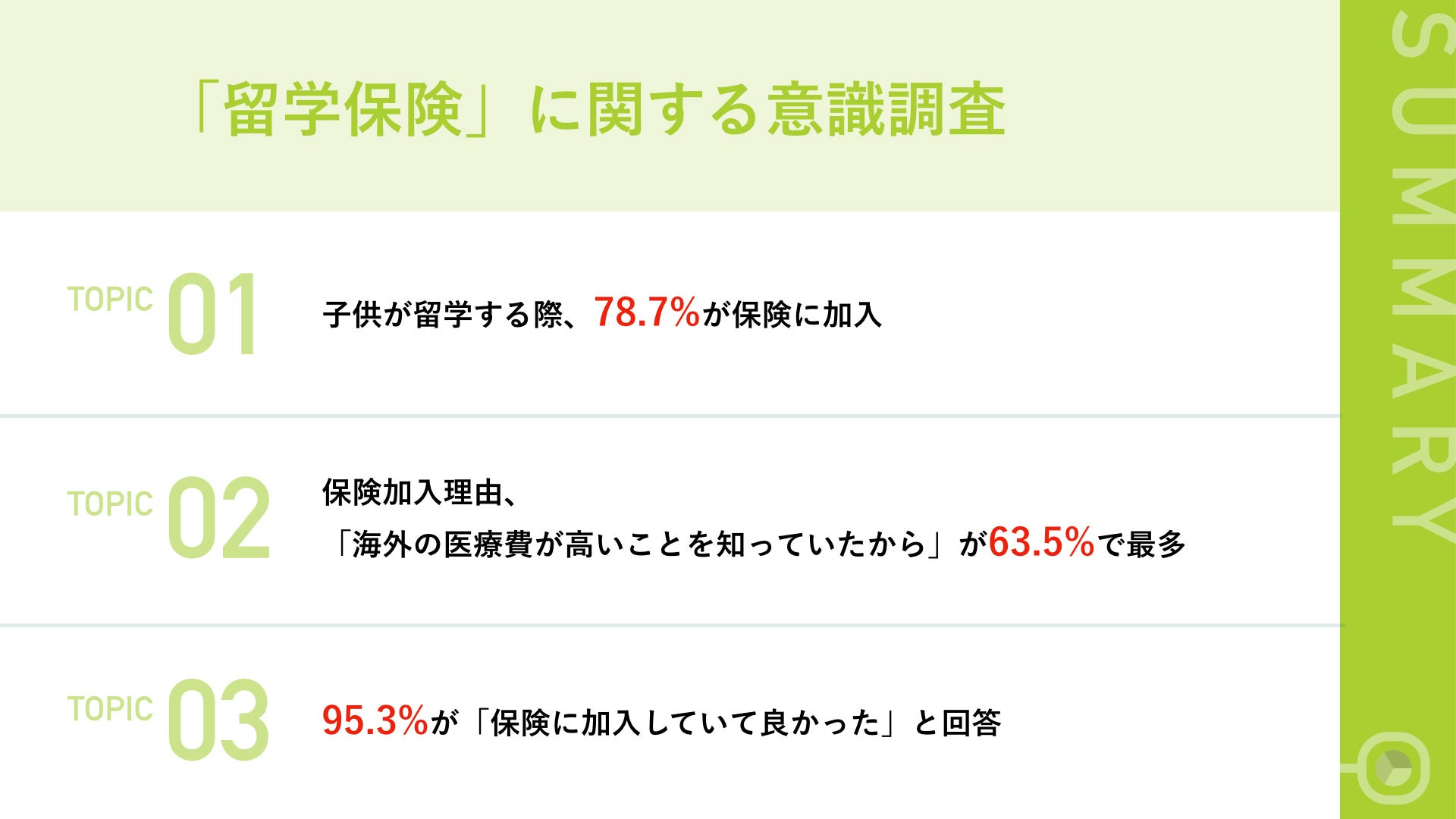 【留学経験のある子を持つ親を対象にアンケート】78.8%の親が海外留学前に「保険」に加入