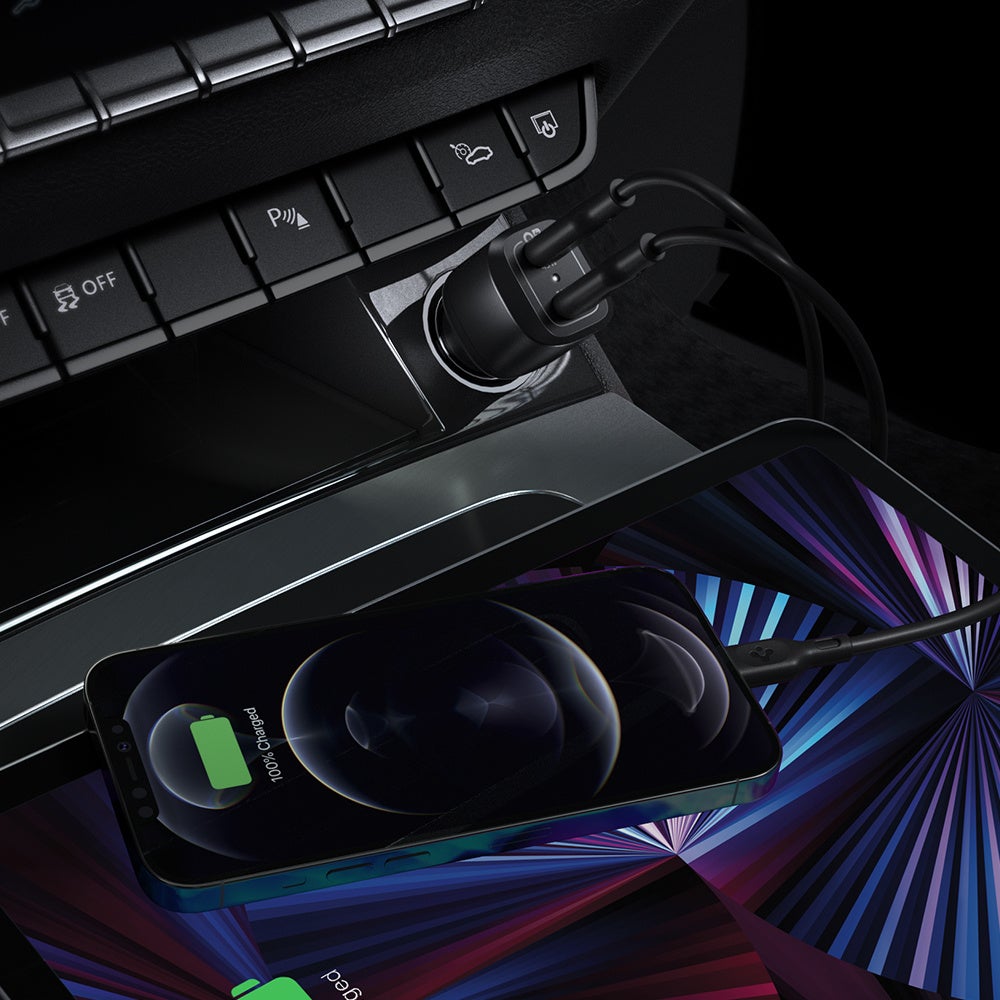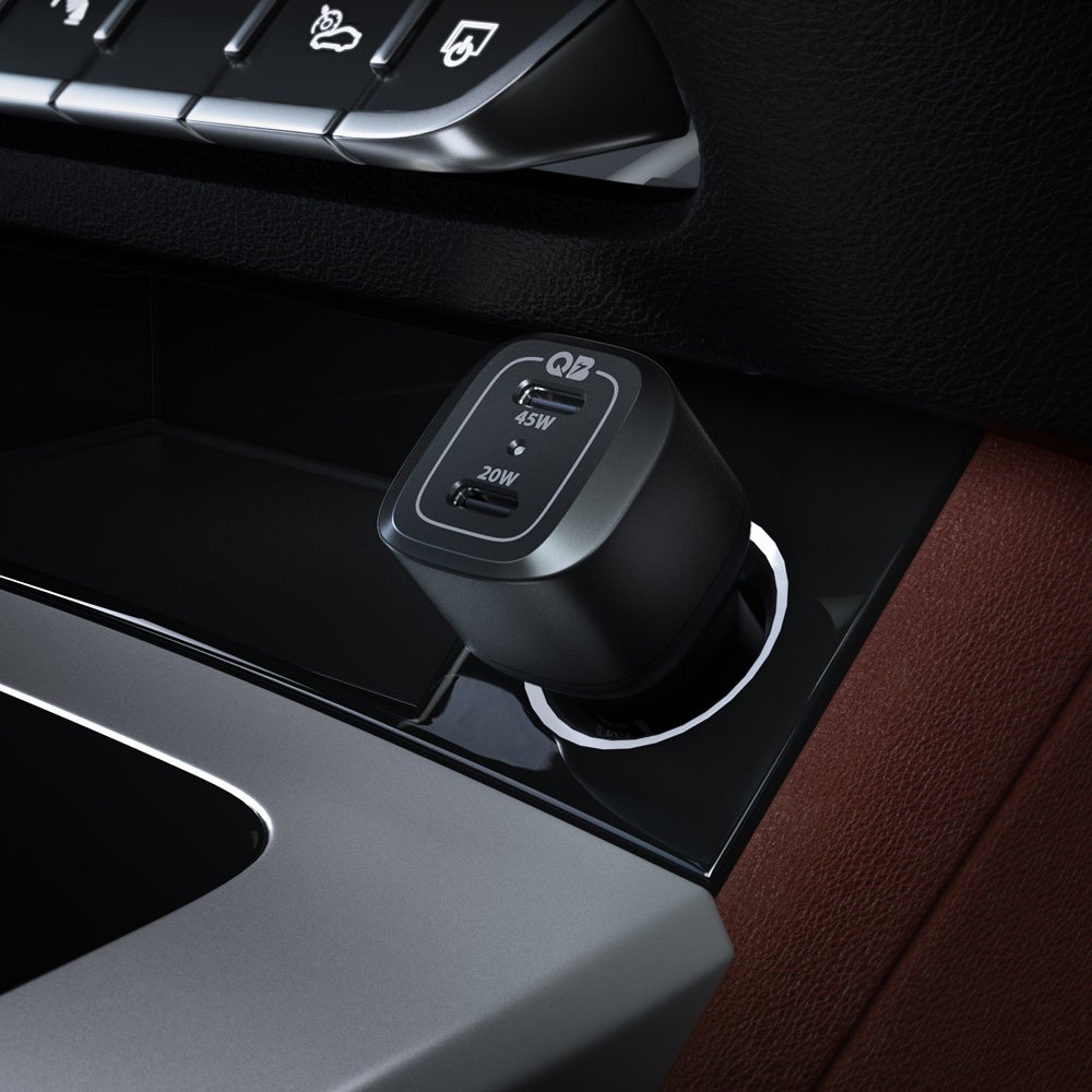 車内に設置するカーチャージャーは、サイズやデザインも大切です。Spigen 65W 2ポートカーチャージャーはシガーソケットに挿して使うタイプで、ダッシュボード周辺・ドリンクホルダー周辺を邪魔せず多種多様な車に取り付けられます。