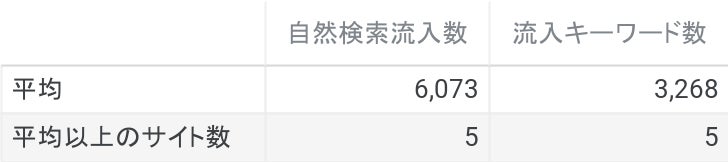 業界内で平均以上の検索流入を持つのは5サイト
