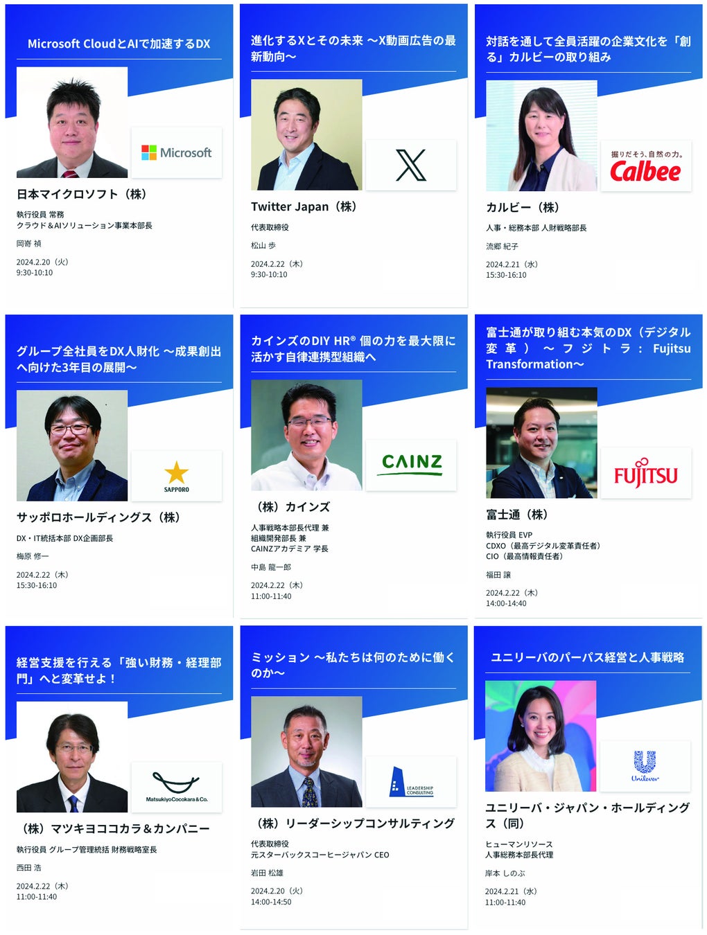 また併催セミナーでは、サッポロ、富士通、日本マイクロソフト、Twitter Japanなど業界トップ企業の経営幹部が連日登壇。DX化、働き方改革、経営課題解決の最新事例を学べます。