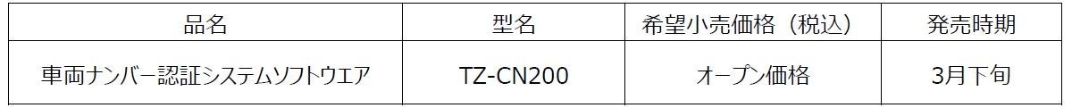 車両ナンバー認証システムソフトウエア「TZ-CN200」を発売