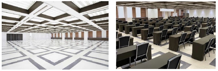 「TKPエルガーラホール(仮称)」に隣接した「TKPガーデンシティPREMIUM天神スカイホール」(契約面積1,672.30㎡・505.87坪)は、高級感のある内装が特徴の多目的オフィスバンケットで、全4室のホール・会議室とレストランを備えております。両施設を連動させ、複数の会場を組み合わせてご使用いただくことで、様々な規模・用途のイベントに対応可能です。