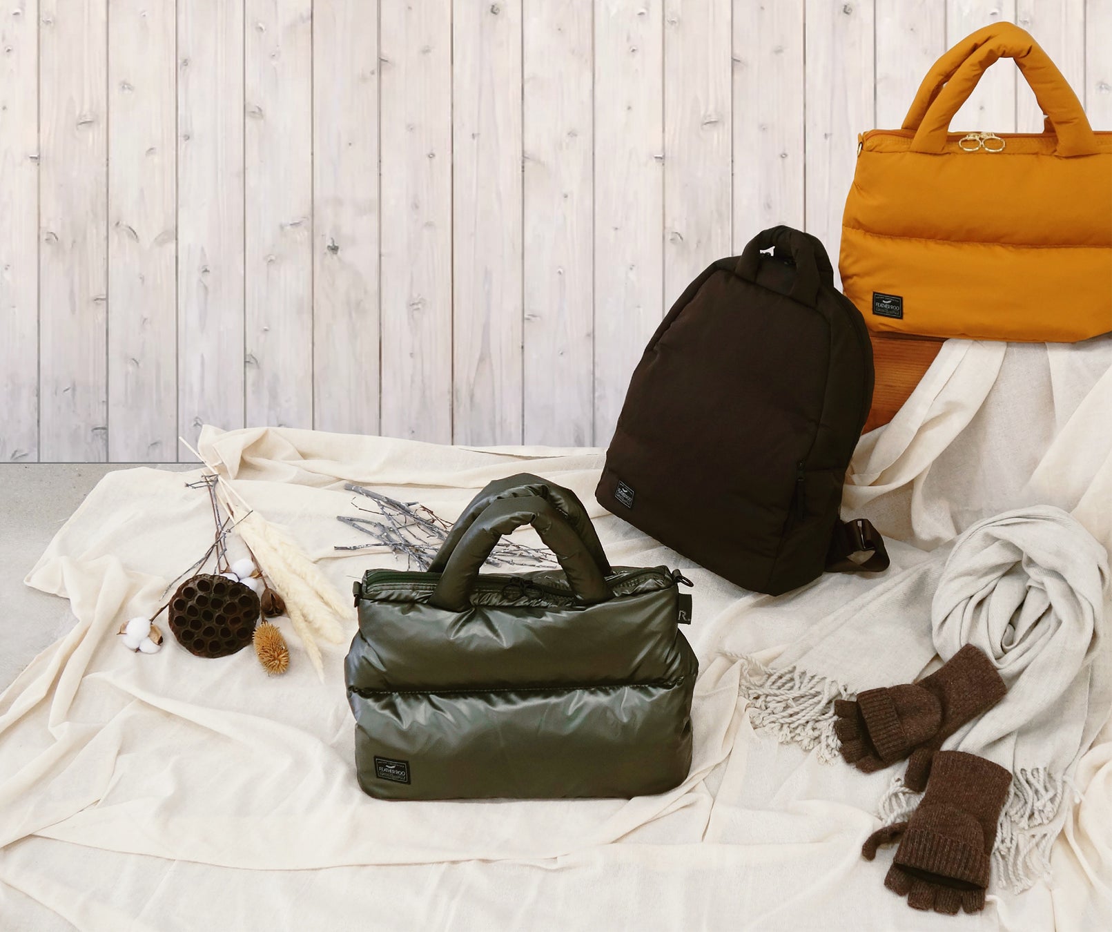 ■「フェザールー」は、羽毛入りで、軽くてふわふわ。ダウンジャケットのようなトートバッグ。