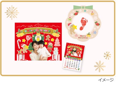 アカチャンホンポのお店でリース型の台紙にあしがたを取ったり、フォトスポットでカレンダー撮影会をしたり、赤ちゃんと初めて過ごすクリスマスの思い出づくりをお手伝いをいたします。