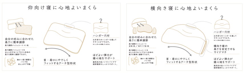 「deep sleep PILLOW」(左:仰向け寝、右:横向き寝)