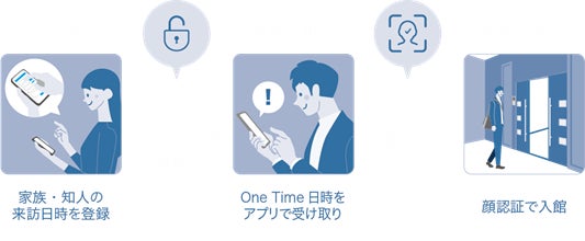 さらに、One Time(鍵貸し)機能により同居しない家族や知人にも鍵を貸し出すことができ、より安全で快適なスマートなマンションライフを実現します。