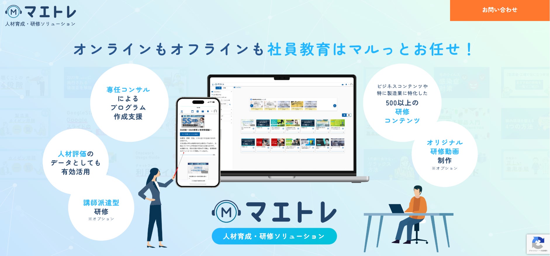『マエトレ』は、専任のコンサルタントが伴走し、豊富なコンテンツと機能を用いて、社員教育の課題抽出からプログラム設計、運用、効果検証までトータルサポート。システムを提供するだけではない人材サービスグループだからこそ、企業の悩みを深く理解し、人材育成の課題解決、人手不足解消による生産性の向上に貢献してまいります。
