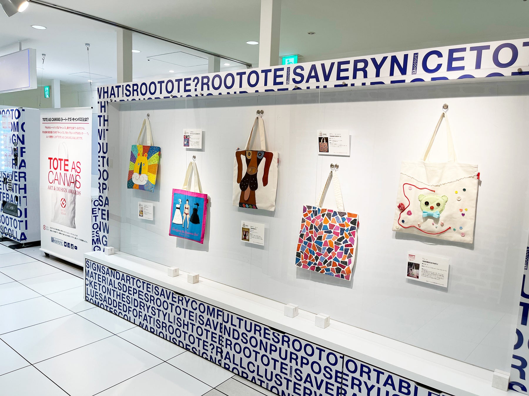 一般公募によるアートなトートバッグ作品のコンテスト「トート・アズ・キャンバス アート&デザインアワードby ROOTOTE」の一部受賞作品のほか、ROOTOTEスタッフによる作品も展示します。