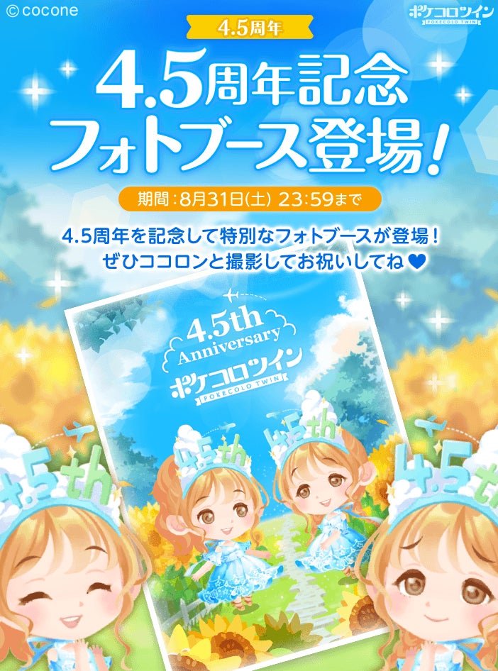 ふたごのアバター着せかえアプリ『ポケコロツイン』、4.5周年を祝うアニバーサリーイベントを開催!