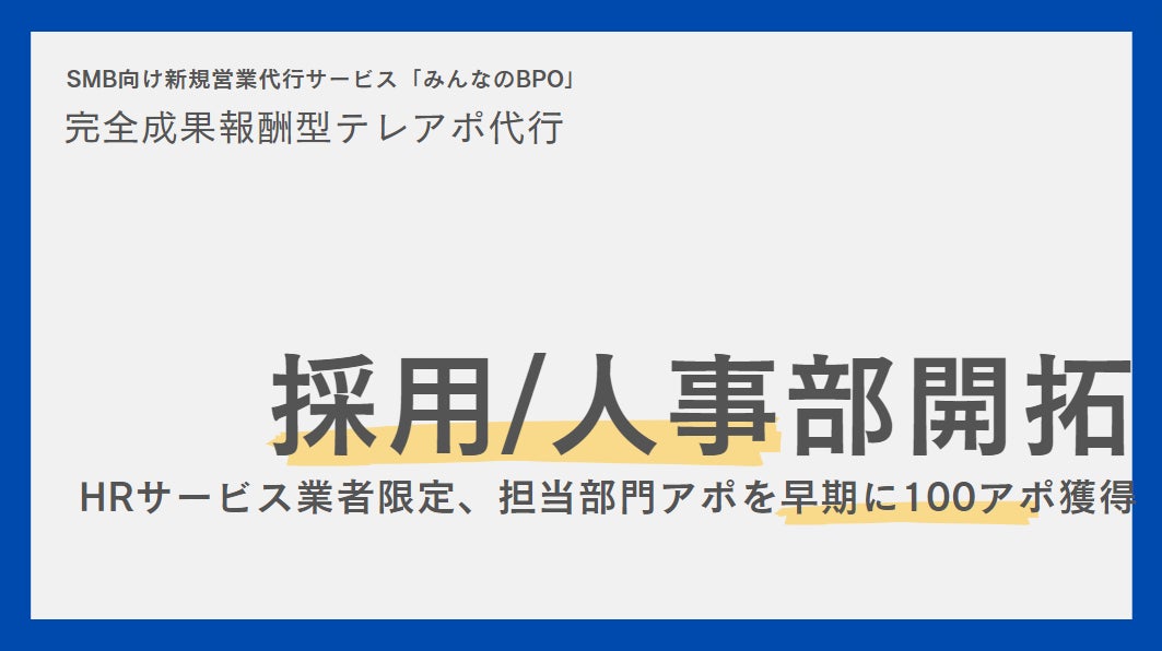 「みんなのBPO」にて【人事・採用部開拓特化型・アポ獲得メニュー】の提供を開始。完全成功報酬で各種HRサービスのリード獲得を支援。